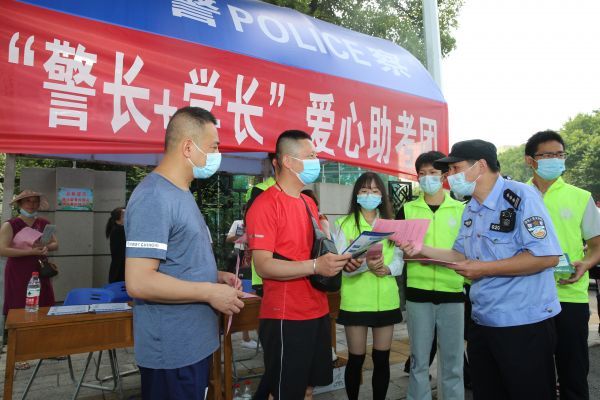 “高考闯关很重要,防范诈骗也关键。”经开区公安分局湖滨派出所民警熊洪平不停地为家长们宣传防骗技能。为了全方位服务考生和家长,与往年不同的是,经开区公安分局联合江汉大学特别组织了一支由公安民警和大学生志愿者共同组成的“警长+学长”爱心助考团,用更加活灵活现的方式为考生和家长答疑解惑、现场服务。