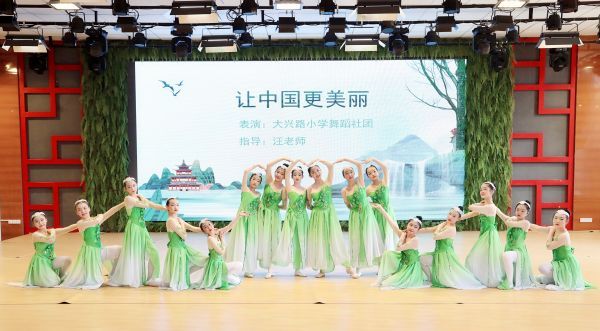 “美丽中国,我是行动者。”大兴路小学舞蹈社团的歌舞《让中国更美丽》,歌声优美,舞姿蹁跹,缕缕真情中传递着“环境保护,人人有责”的理念。