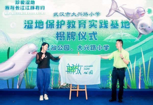 今年的“六一”儿童节还有一层特殊的意义——当天,《中华人民共和国湿地保护法》正式实施。学校小湿地长志愿服务团队走进解放公园及湿地科普馆,适逢科普馆长江江豚主题湿地馆开馆,馆校双方签署合作备忘录:新馆成为学校湿地保护教育实践基地,学生作为小小讲解员为公众讲解湿地及江豚知识,师生将依托实践基地开展湿地观鸟、湿地植物辨识等活动,以此呼吁全社会都来为湿地保护尽一份责任。