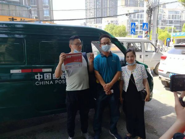 下午1时54分,早早等候在黄陂六中的投递员匡莹接过邮件,迅速赶往考点。因为石同学的父母均不是武汉人,在电话中误将考点报成了黄陂六中考点。匡莹赶到黄陂六中考点后电话联系石同学父母,才知道对方报错了考点。他一刻也不敢停留,又迅速赶往黄陂职业技术学校考点,第一时间完成投递。从揽收邮件到送达收件人手中,共耗时86分钟。