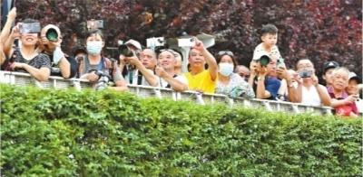 市民集聚南岸嘴,争睹“武汉7·16渡江节”抢渡长江挑战赛盛况。长江日报记者喻志勇 摄