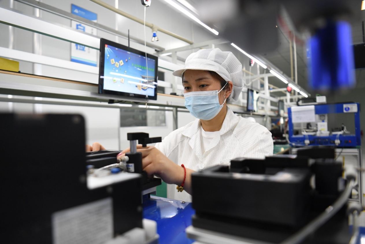 武汉极目智能技术有限公司技术人员在组装智能辅助驾驶系统终端。记者高勇 摄