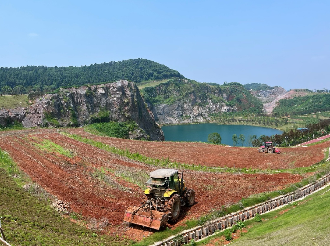 记者在现场看见,如今,一期主打的“矿花乐园”已经完工,原本满目疮痍、灰秃秃的山体已是草木葱绿,复垦的600多亩耕地、林地已见效益,裸露矿坑变身的翡翠湖已成为景区标志。如今,一期区域内正在种植新一批花种,开花后,园区内的色彩将更丰富。