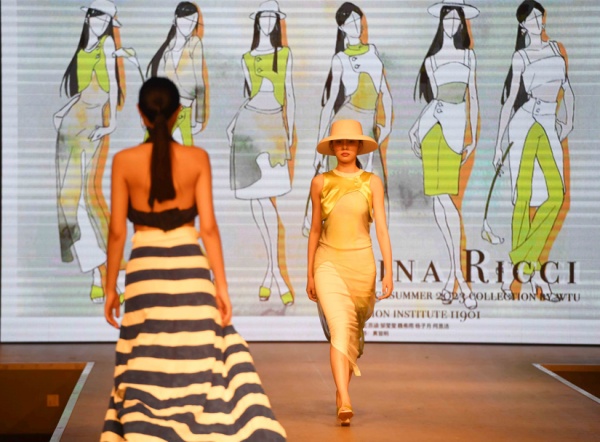 2022年武汉纺织大学时装周作品发布会。记者高勇 摄