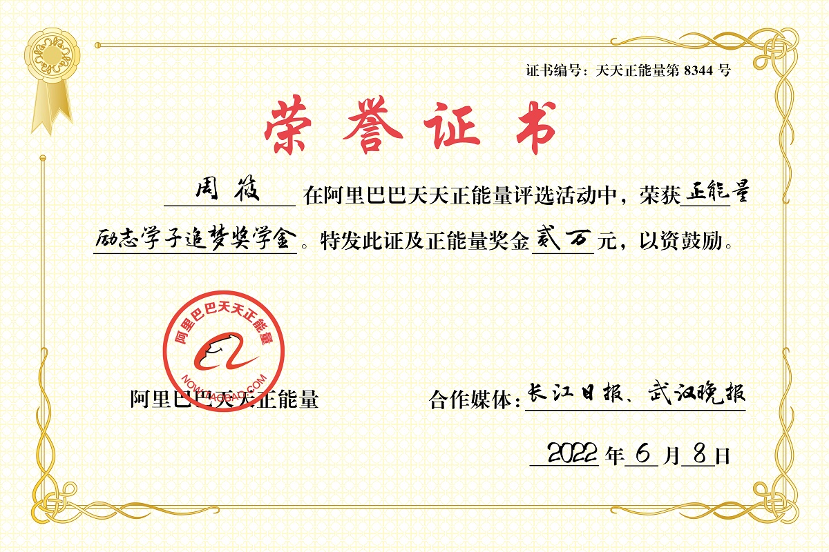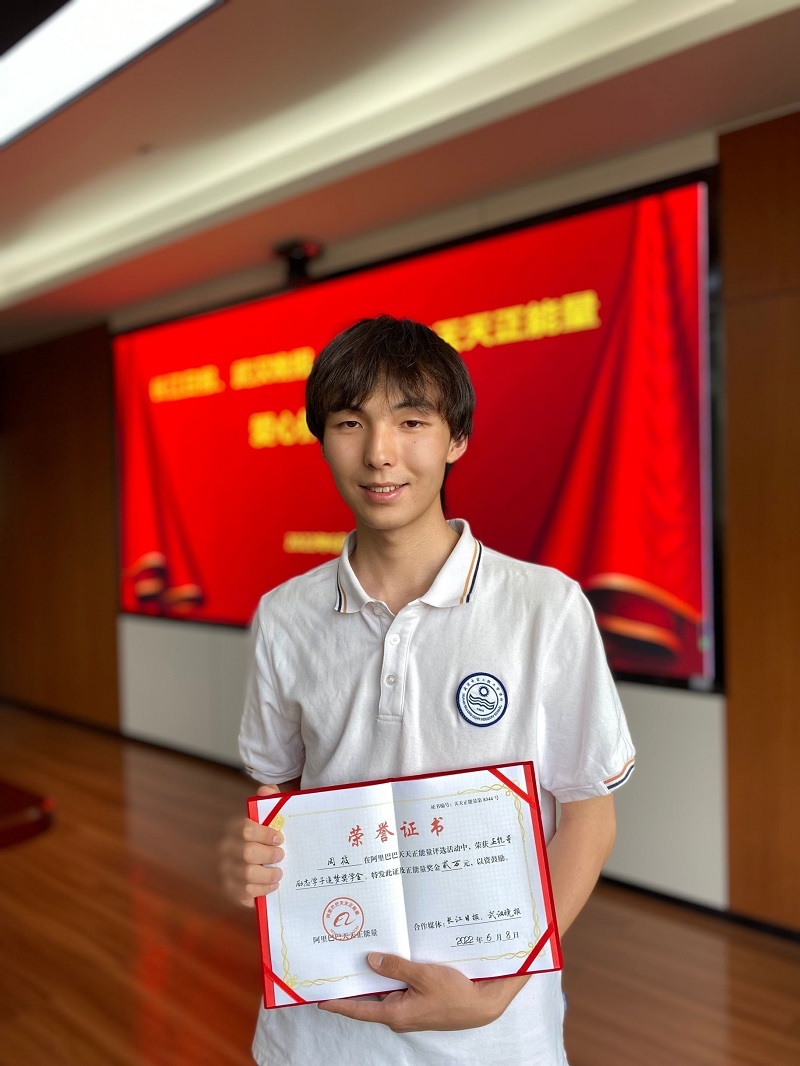 长江日报大武汉客户端6月8日讯(记者周锐)中职技能高考生、武汉二轻工业学校学生周筱,一边备考一边照料两位年迈亲人,感动社会。6月8日,阿里基金联合长江日报、武汉晚报,为周筱颁发2万元“正能量励志学子追梦奖学金”。