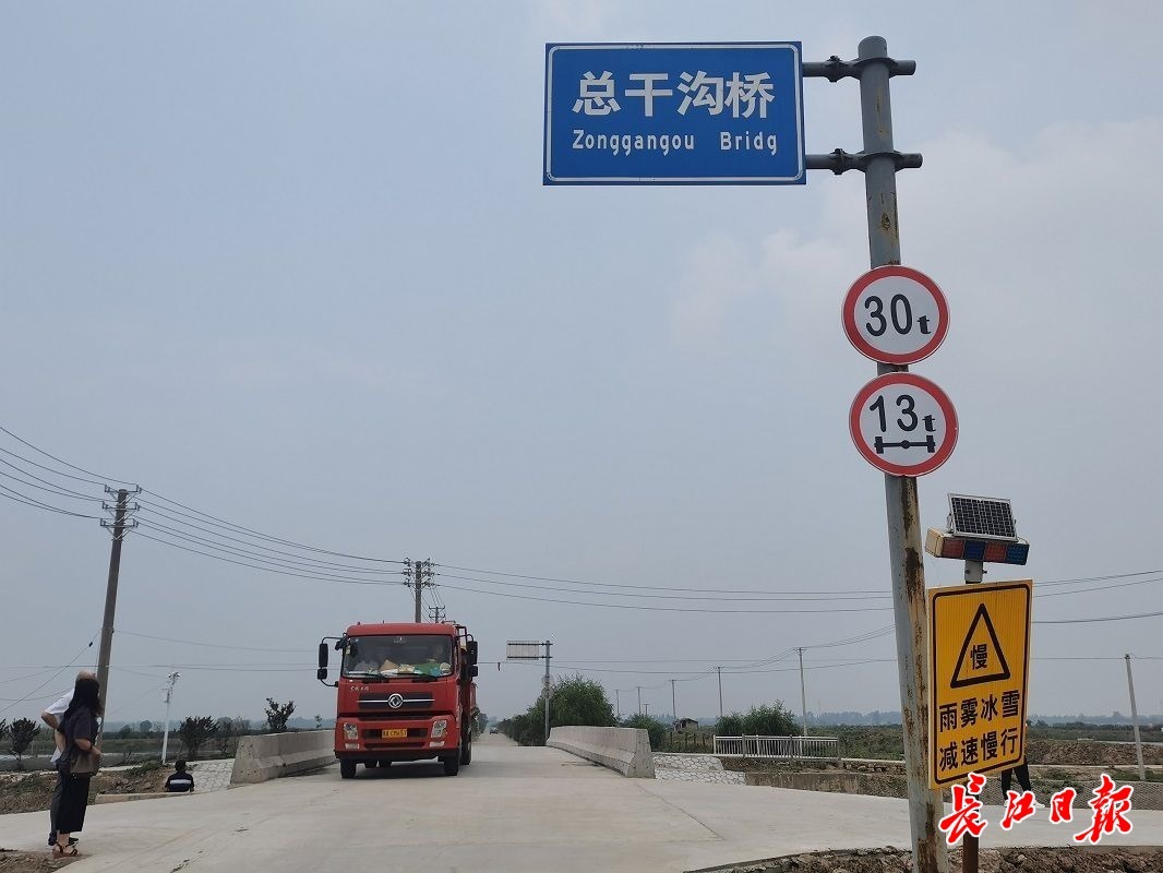5月31日,长江日报记者来到刚投用不久的总干沟桥,宽阔的水泥路面,矗立桥梁标识牌,格外引人注目,大约每隔1分钟就有一辆载货农用车从桥上通过。