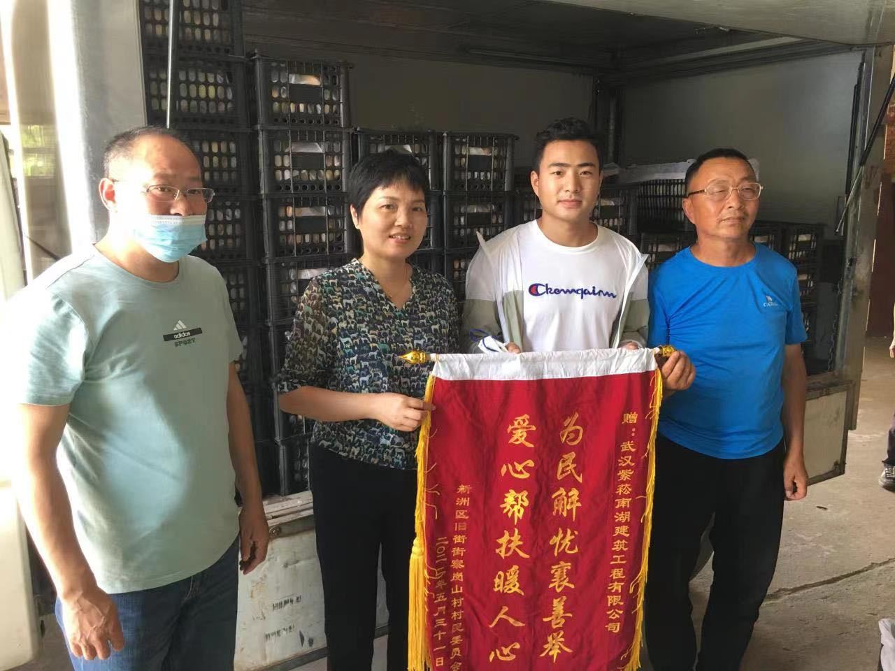 长江日报大武汉客户端6月8日讯(通讯员汪锋 张子培) “感谢你们,帮我们解决了黄桃的销售难题!”日前,洪山街道驻村工作队第一书记张子培和新洲区旧街街寨岗村支部书记王胜平把锦旗送给紫菘南湖建筑工程有限公司的工作人员。他们身后的货车上,满载着2000多斤优质的精品黄桃。但是在不久前,面对挂满枝头的黄桃,支部书记王胜平还一直愁眉不展。