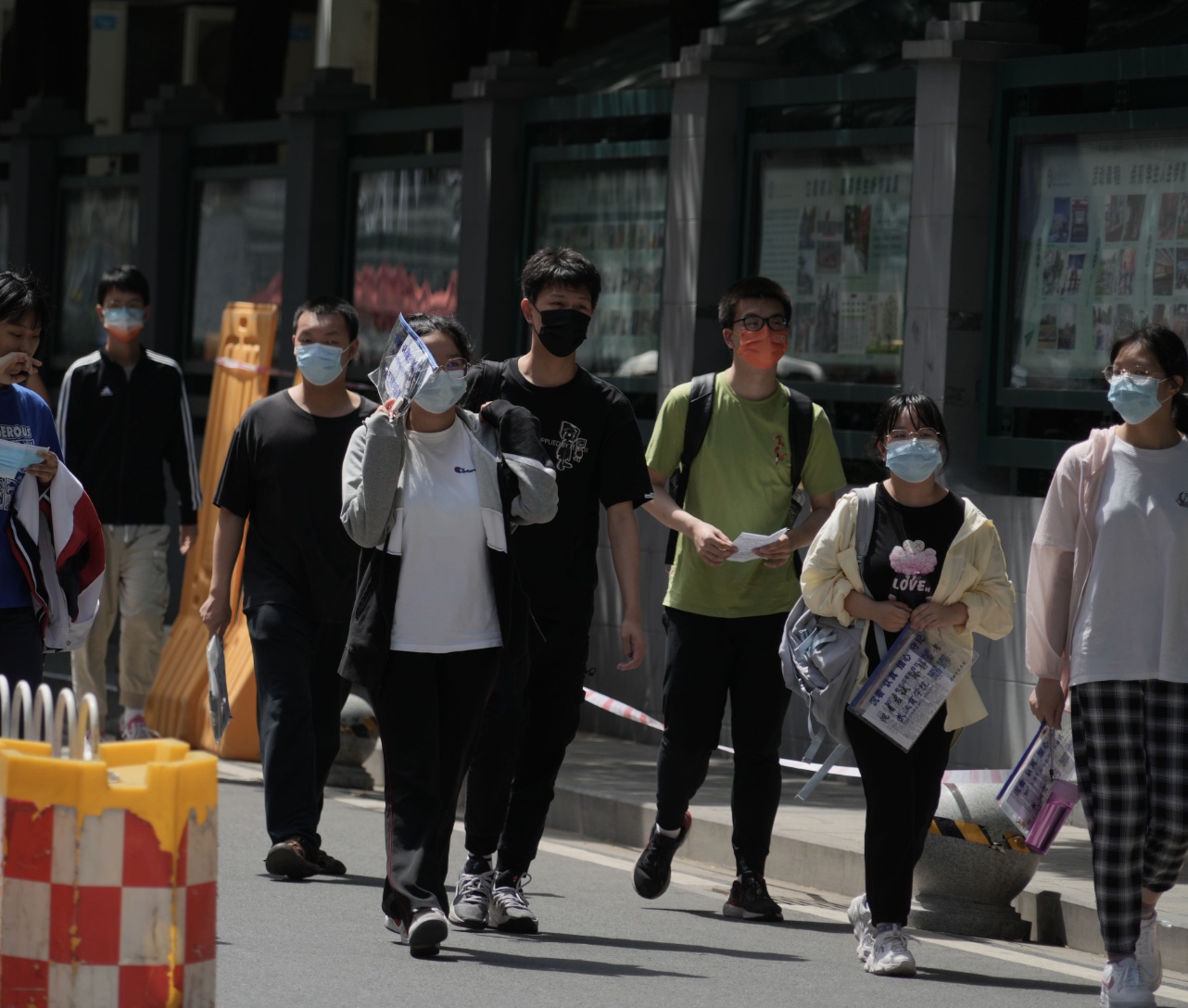 6月8日下午,气温升至34℃,湖北省武昌实验中学考点外的考生和家长。记者何晓刚 摄