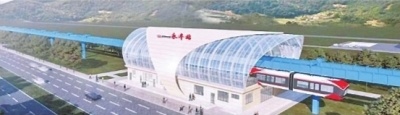 磁浮空轨列车运行效果图。