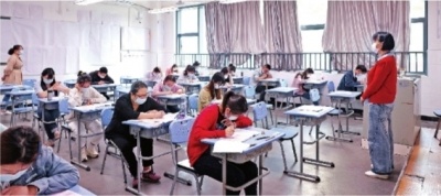 近日,武汉市2022年度事业单位公开招聘笔试在12个区104个考点3482个考场同时开考。图为七一中学考点考生沉着应考。