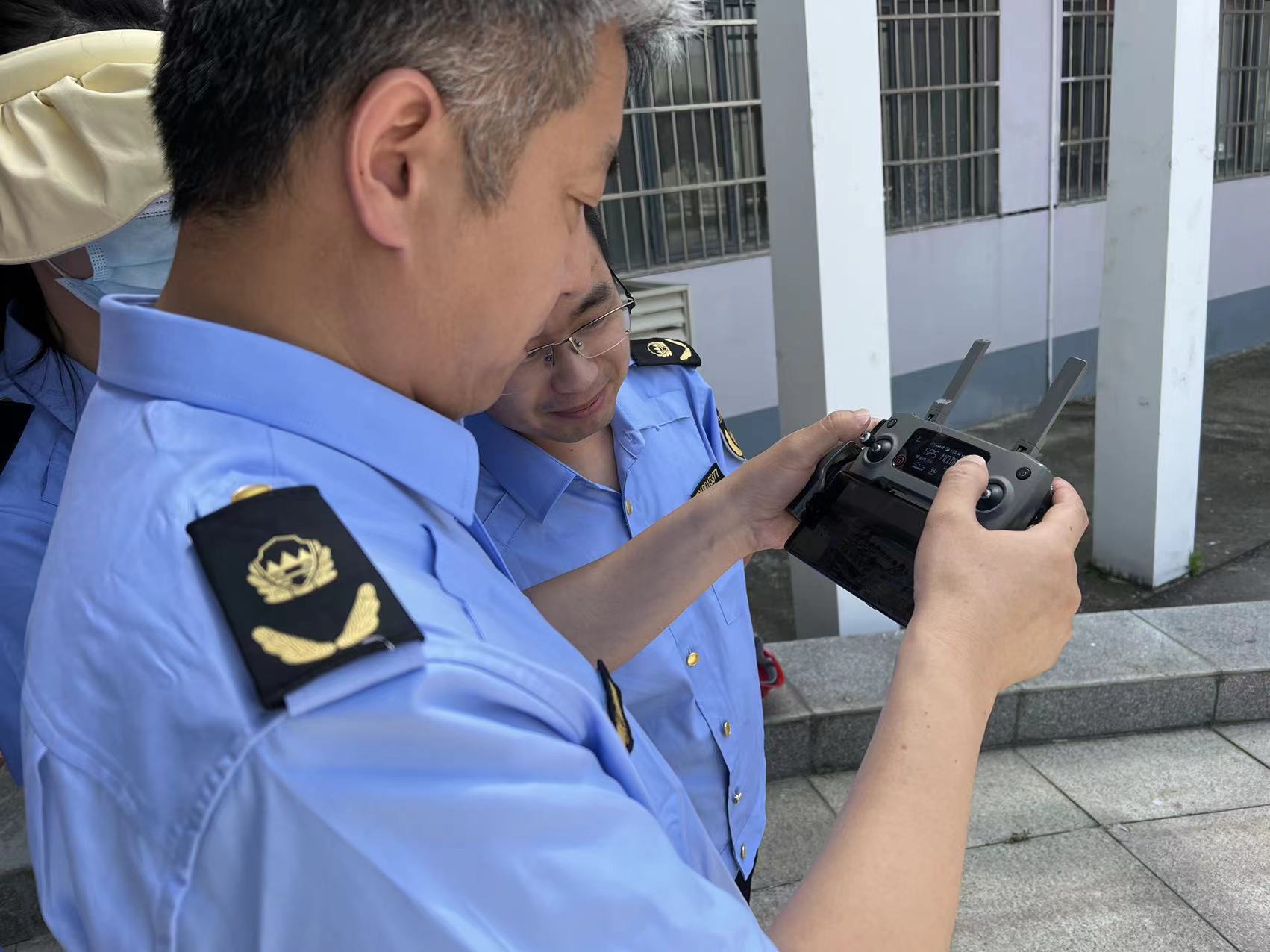 执法队员正在操作无人机。记者梁爽 摄