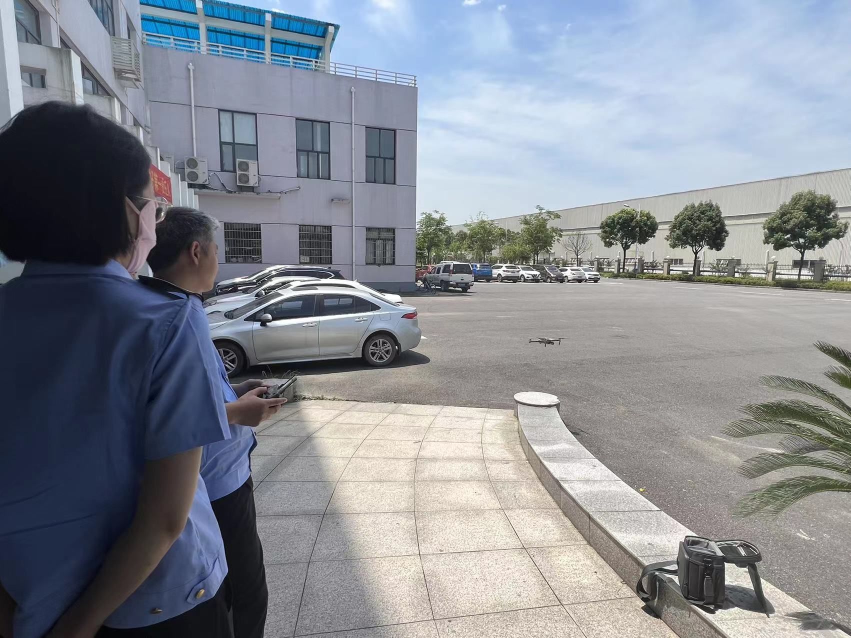 在企业,执法队员们先了解了企业生产工艺,厂区布局,随后使用无人机对污水、废气设施和装卸区的车辆装卸作业过程进行抓拍。只见一名队员熟练地将手机同无人机连接,通过遥控装置操作无人机平稳飞起,飞至指定位置拍下清晰图像,再在高空中拍下厂区的全景照,最后安全飞回,降落地面,整个过程用时不到10分钟。剩余的几名队员也不同的按照指令重复操作过程。