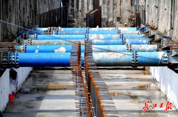 长江日报大武汉客户端6月9日讯 武汉室外空气湿热,位于长江新区谌家矶大道、新区大道地下约6至7米的地下综合管廊施工现场却凉意十足。长江新区起步区重点项目谌家矶大道的地下综合管廊西起解放大道,东至三环线平安铺立交,全长约4.7公里。项目一工区紧邻朱家河大堤。目前,为降低汛期对施工的影响,地下管廊主体结构已经完工870米。