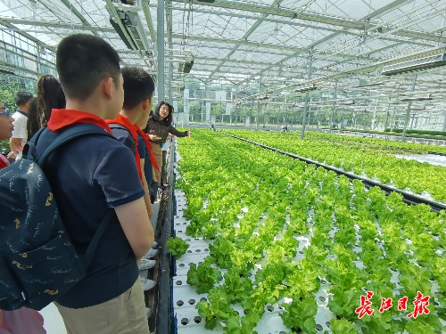 大兴第一实验小学教师周黛妮带着孩子们在武汉市农科院里边看边学。 记者刘嘉 摄