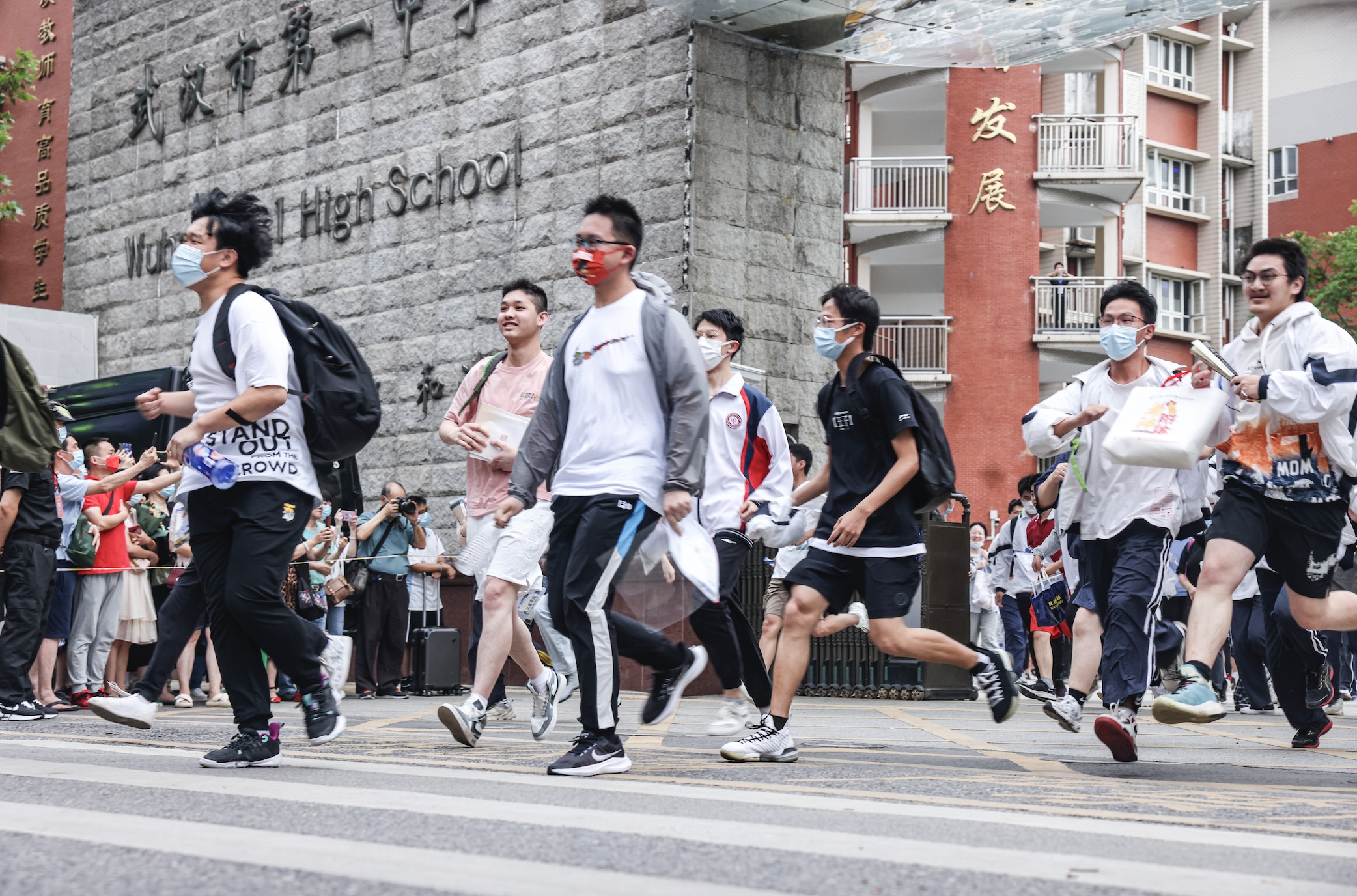 考试结束,考生们争相奋力冲出考场。记者胡冬冬 摄