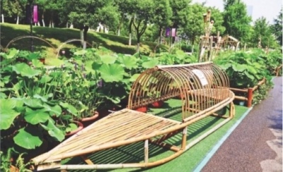 展览策划者介绍,此次荷花节力求展现湿地自然之美,并遵循“从自然中来,到自然中去”的环保理念,展览所有的布置都采用自然材料竹子,充分将荷花的雅致之美和传统竹工艺的质朴气质相结合,且材料全部均可回收利用。