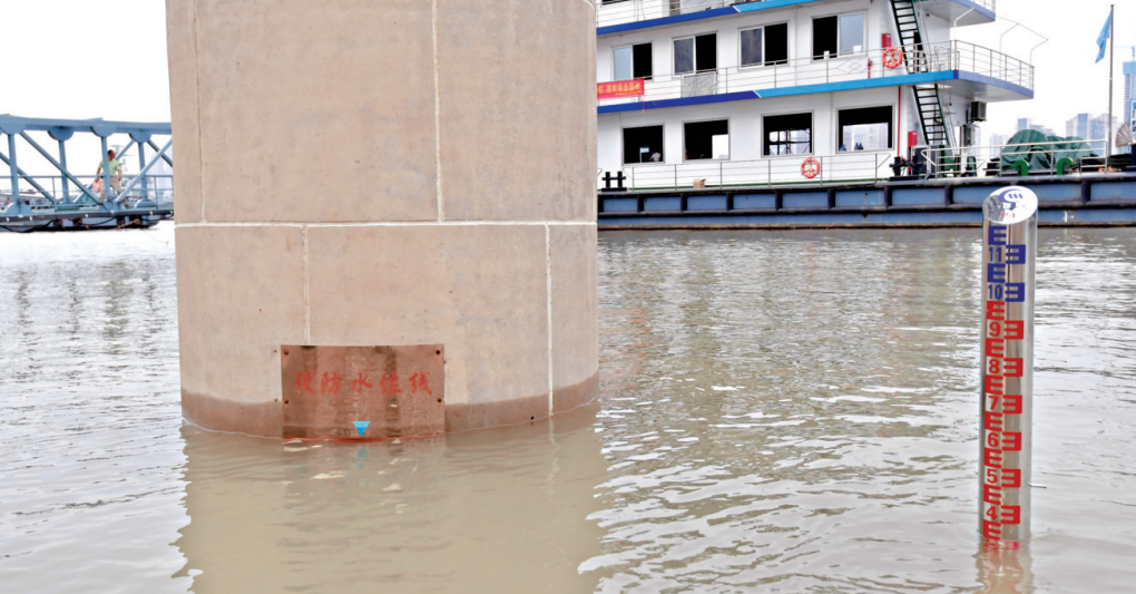 6月9日17时,武汉关报汛站,长江水位已逼近设防水位线。记者刘斌 摄