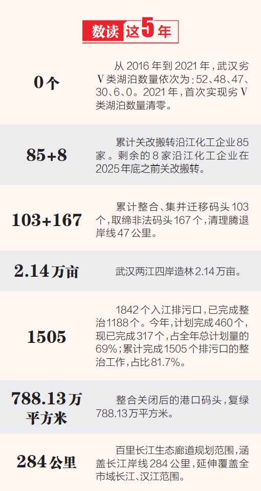 近5年来,通过码头优化、岸线治理、植被复绿,长江武汉段露出更多绿色,岸线变绿了、变美了。