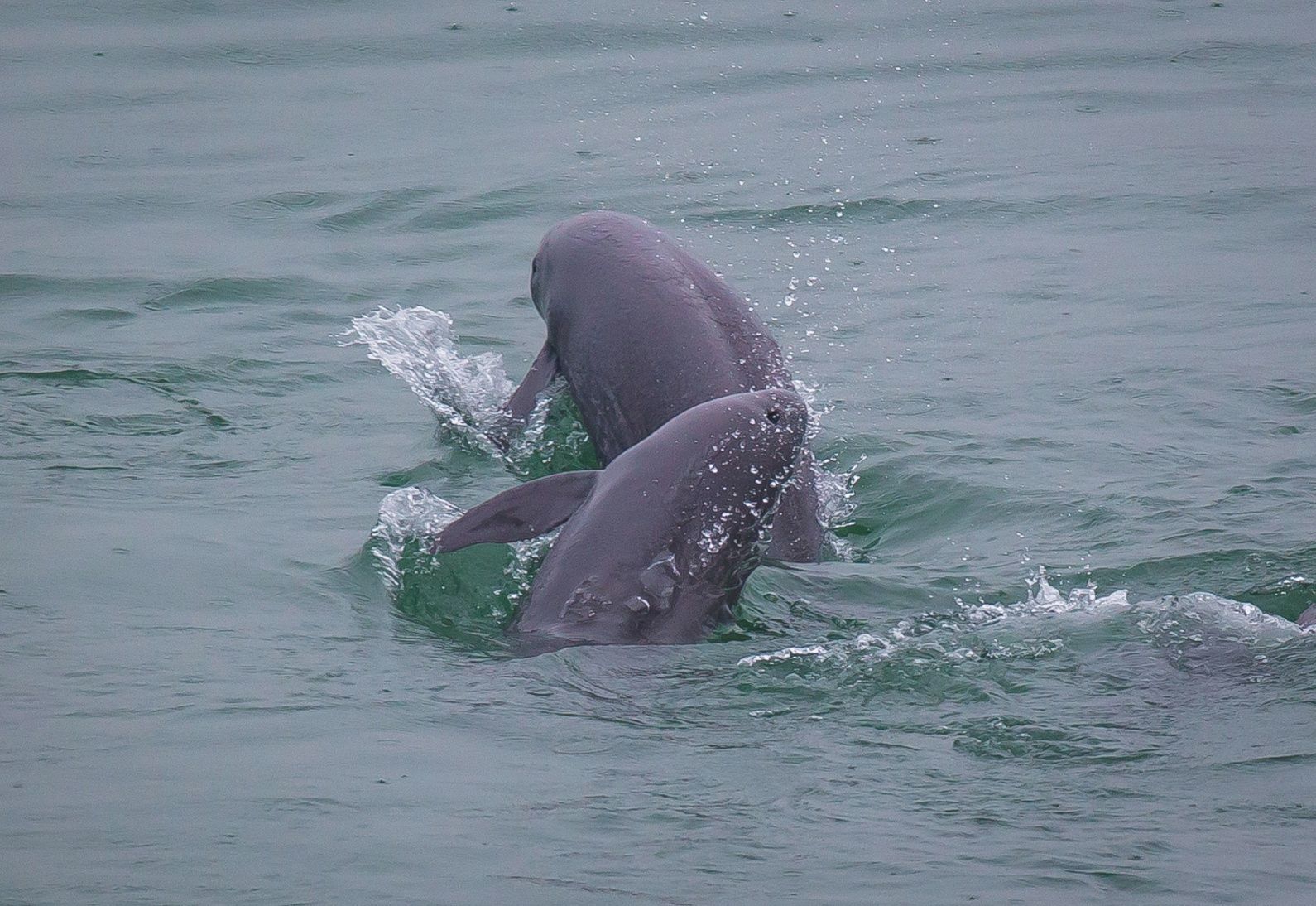 5月10日,长江江豚在水中嬉戏。 新华社记者肖艺九 摄