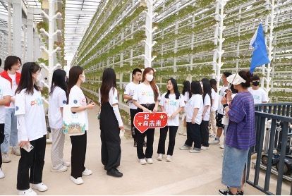 青年学子参观水培蔬菜展示区。 通讯员鲁彪 供图