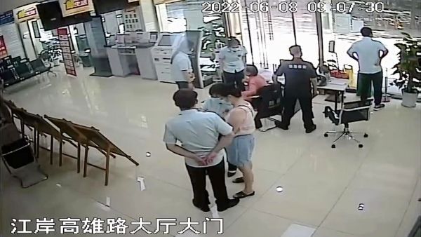 走失的老人来到网点(视频截图)