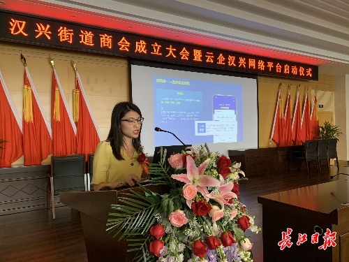 长江日报大武汉客户端6月10日讯 6月9日下午,在江汉区汉兴街道商会成立大会上,一款名为“云企汉兴”的线上平台正式发布。该平台专门为辖区企业开发,手机扫描二维码即可查询惠企政策、反映实际问题、展示自身特色、寻求业务合作,有利于打造辖区企业“熟人圈”,帮助企业促成“家门口的生意”。