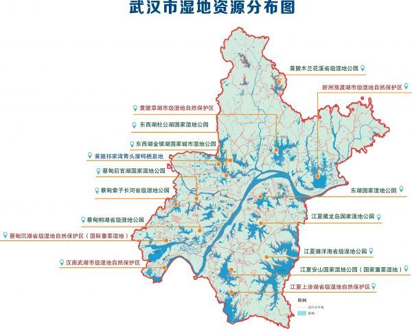 “我国的‘国际湿地城市’特色鲜明。”市园林和林业局野生动物保护处相关负责人介绍,例如东营是沼泽湿地,海口以海洋湿地为主,银川主要是黄河河流湿地。武汉的湿地类型则以湖泊为主,且分布较均匀。通过《武汉市湿地资源分布图》可以看到,数不清的不规则蓝色斑块,密密麻麻交织在武汉国土上,和城市深度相融。