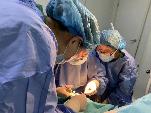 两位专家为茜茜实施斜视矫正手术。通讯员顾俊芳 摄