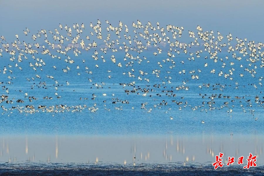 蔡甸区沉湖国际重要湿地自然保护区内,万鸟齐翱翔。记者史伟 摄