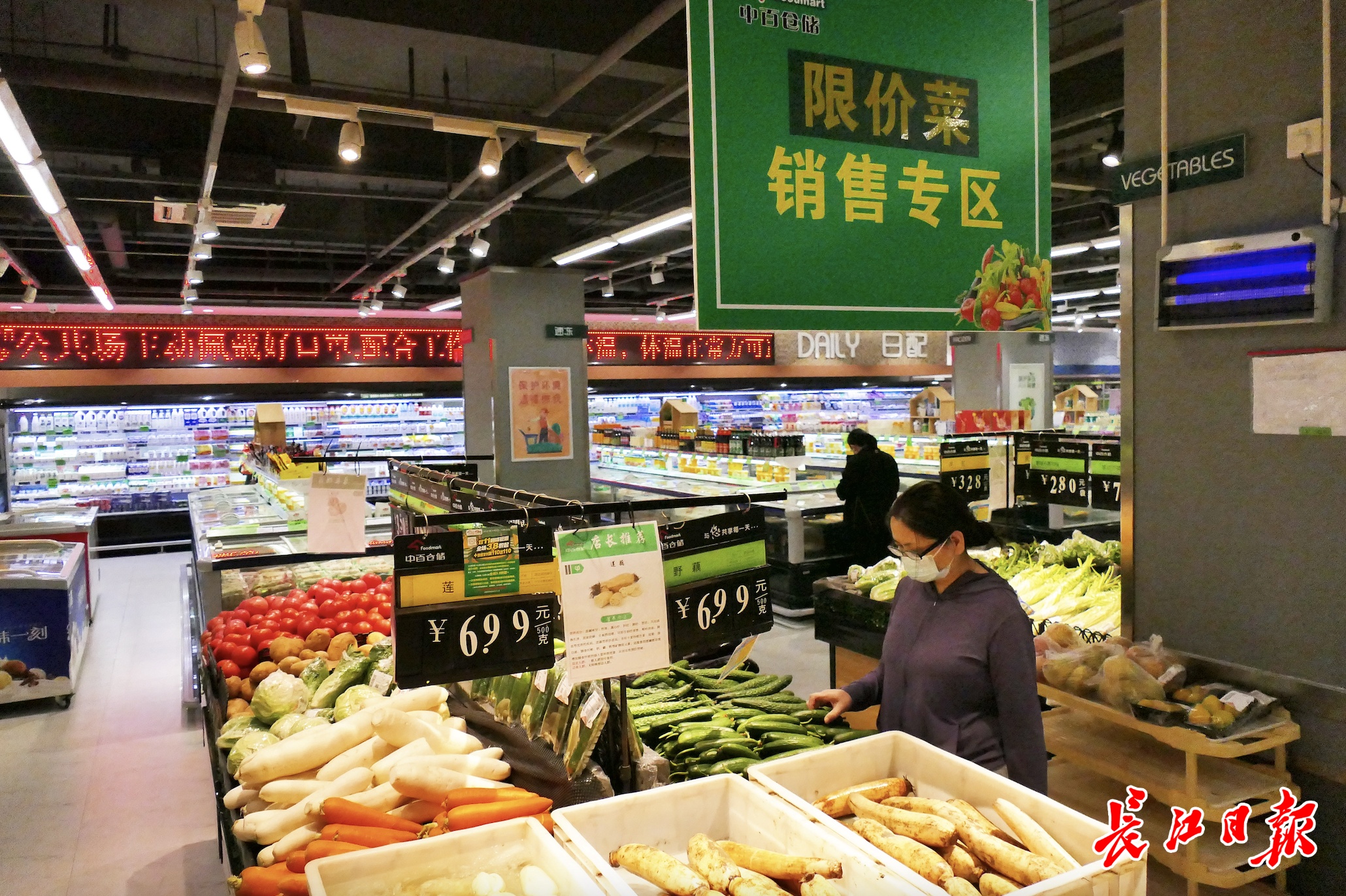 中百仓储北湖店市民按需购买限价蔬菜。记者詹松 摄
