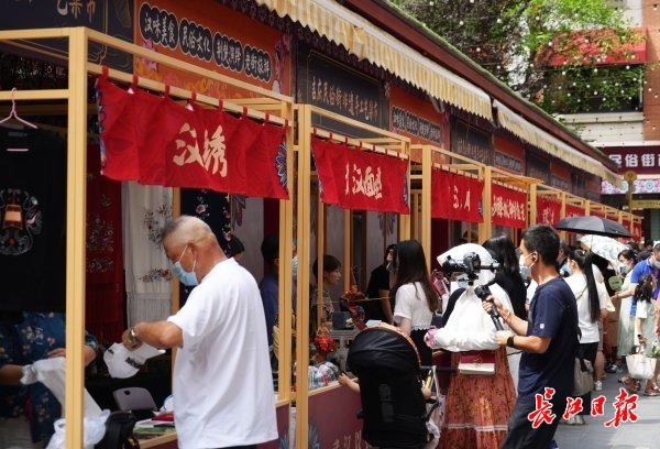 长江日报大武汉客户端6月11日讯(记者周满珍 通讯员刘甜甜)6月11日,2022年武汉市“文化和自然遗产日”非遗宣传展示主场活动暨江岸区第四届云上非遗节活动,在吉庆民俗街拉开大幕。精彩纷呈的非遗展演、精美绝伦的传统手工艺精品展、非遗美食市集以及第七批武汉市市级非遗代表性项目保护成果展、非遗购物节直播等活动,让现场市民大呼“震撼”。