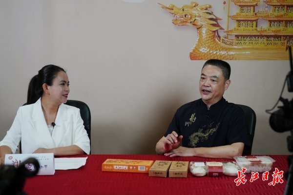 老字号汪玉霞传承人走进长江日报直播间。 记者何晓刚 摄