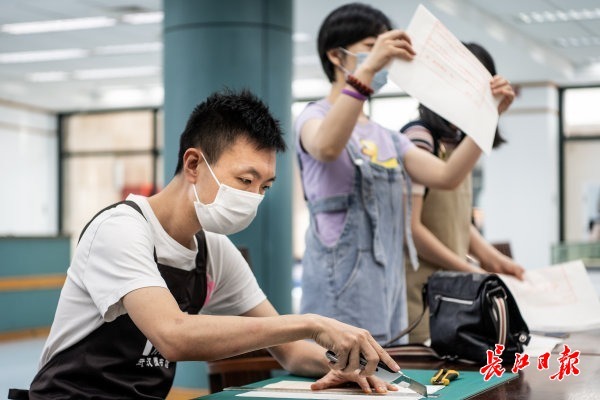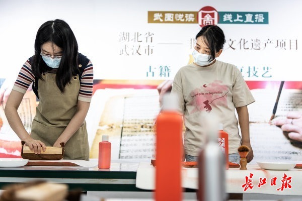 长江日报大武汉客户端6月11日讯 6月11日是2022年“文化和自然遗产日”,武汉图书馆举办“2022年文化和自然遗产日·古籍装帧体验活动”,特邀10名市民参加体验古籍装帧,体验雕版印刷、拓印、线装书装订,了解看似高冷的古籍修复师的日常。
