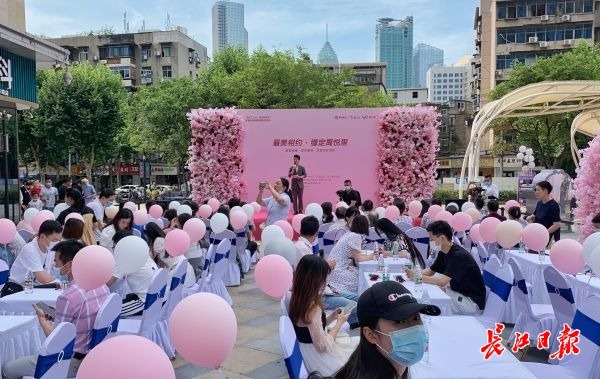 长江日报大武汉客户端6月11日讯(记者乔驰)11日上午,在江汉区菱角湖壹号步行街,一场专为单身青年举办的“最美相约·缘定禹悦里”相亲交友主题活动开幕,引得近百名青年参与。
