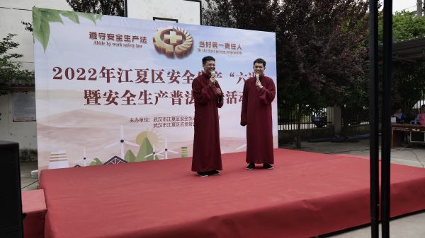 长江日报大武汉客户端6月11日讯(见习记者魏旭平 通讯员谢恒)6月9日,在江夏区金口街南岸一村,两位演员带来相声表演《安全在我心》。一个个生动的故事结合了应急安全主题,让现场观看的村民笑声不断,“挺有意思的,还学到了安全知识”。