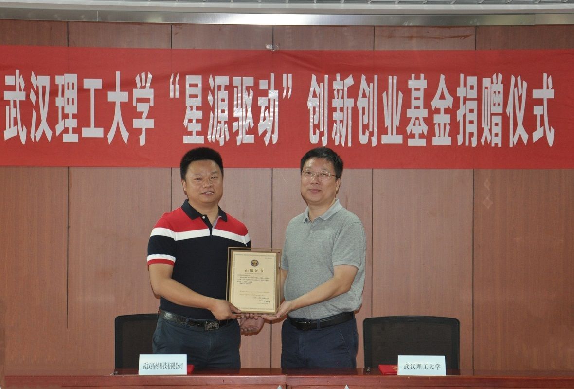 长江日报大武汉客户端6月11日讯 近日,武汉理工大学2020级博士生、武汉拓材科技有限公司董事长卢鹏荐向学校捐赠20万元,设立“星源驱动”创新创业基金。本次捐赠是武汉理工大学首次由在校生设立的创新创业基金。