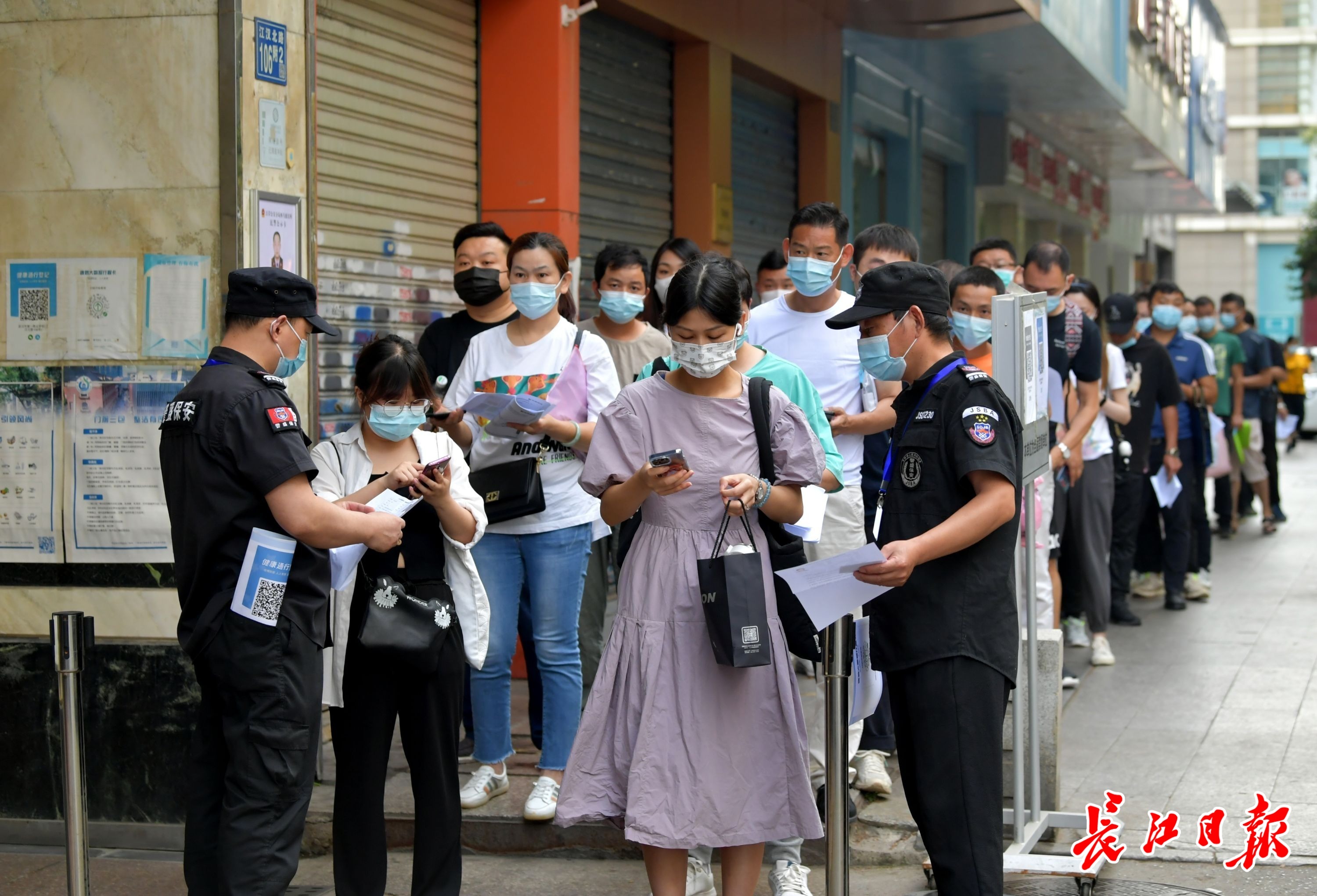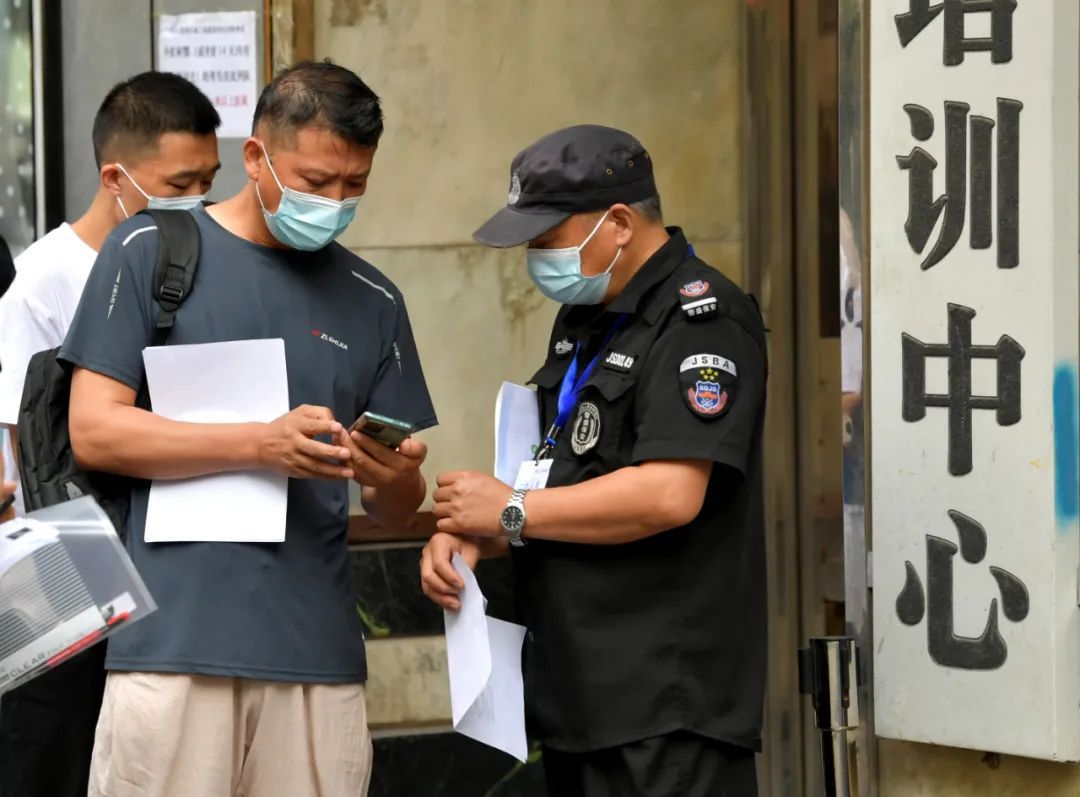 考生正在出示绿码。长江日报记者刘斌 摄