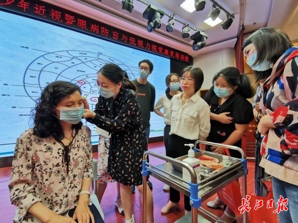 长江日报大武汉客户端6月12日讯 6月12日,江汉区卫生健康局、湖北省中西医结合医院邀请眼科专家、中医专家,为江汉区部分试点学校保健教师、基层医院医护开展中医药适宜技术防控青少年近视暨眼病防盲与低视力视觉康复培训。来自江汉区8所试点服务学校、6家试点实施单位的分管副校长、保健老师、分管副院长、医护人员共同充电学习。