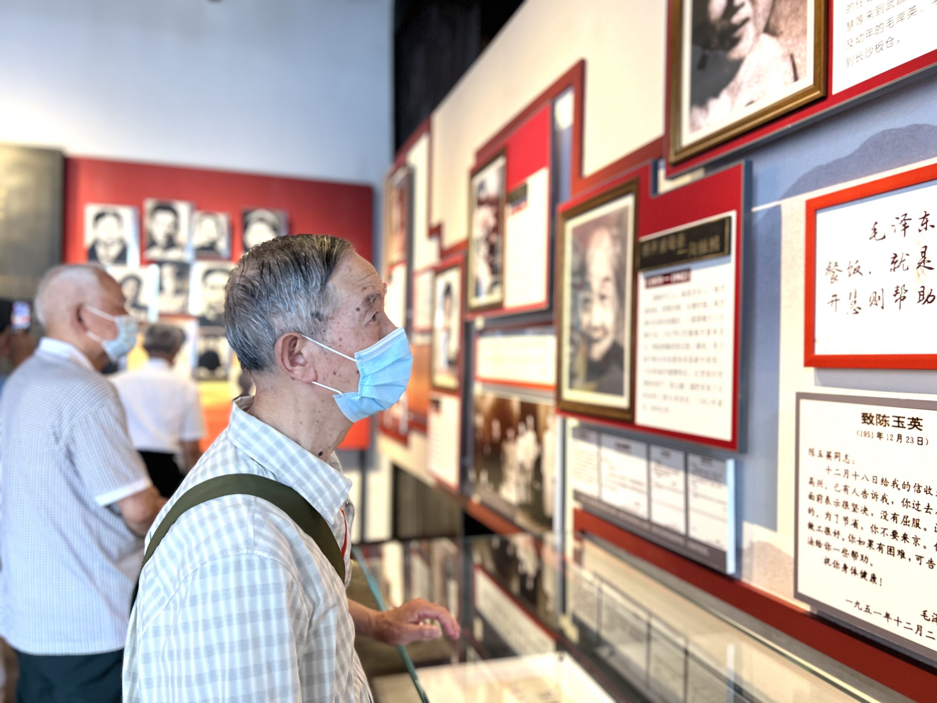 老战士万方瑞在武汉革命博物馆农讲所内参观。