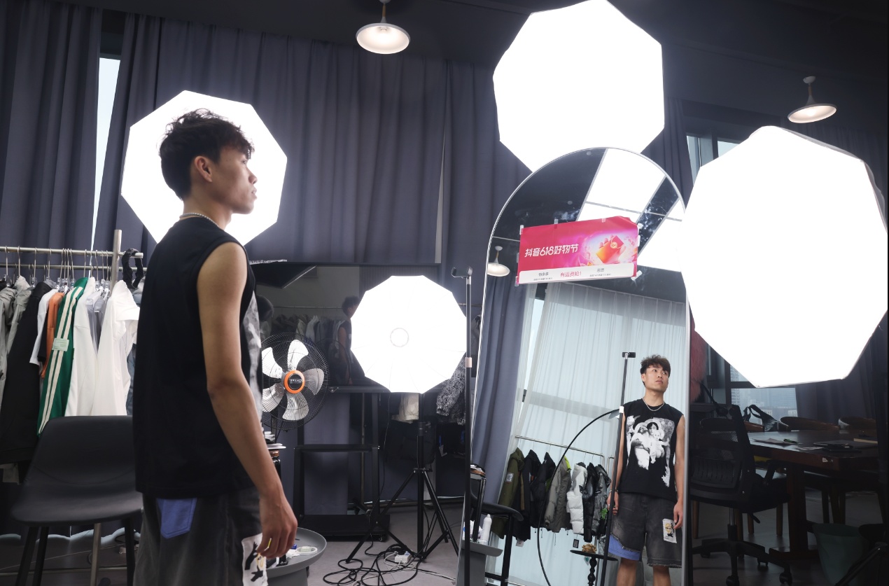 在云尚,汉派男装品牌“云端”逆风飞扬的故事激励着大批汉正街服贸企业、商户抢抓直播风口。云端男装“恺多多”直播间运营总经理及主播廖恺告诉记者,他曾到广州、杭州等电商发展较快的城市学习直播,但是武汉强大的供应链能力和交通物流优势给予他信心。去年10月,他在云尚创立直播公司,与汉正街传统服贸商合作选款、设计,找湖北省内的工厂代工,再通过他的直播间销往全国。今年3月,云端曾创下抖音直播12小时销售额过200万元的佳绩。目前,云端有3个抖音账号在播,每天销售1万单。成功进军汉派男装头部企业行列。“我定下了一个小目标:今年冬天,单场直播销售额突破400万元,打入全国男装直播销售前五名。”