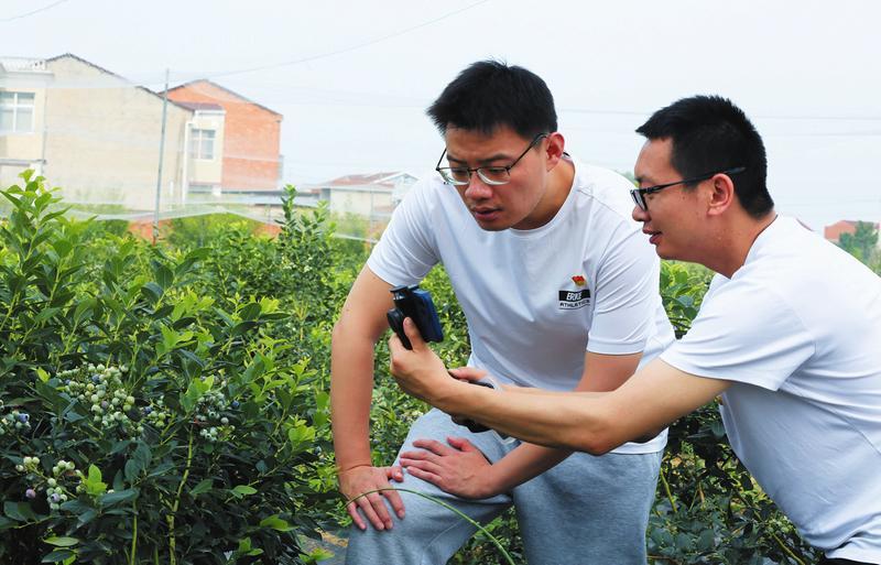 6月9日,随县审计局党员志愿者下沉到该县尚市镇王河村千亩扶贫蓝莓产业园,利用“抖音”等新媒体平台线上销售蓝莓。当日接单50余个客户,销售蓝莓1500余斤,受到乡亲们的点赞。 (随州日报全媒记者 孙洪涛、通讯员 龚承斌、夏文远摄)