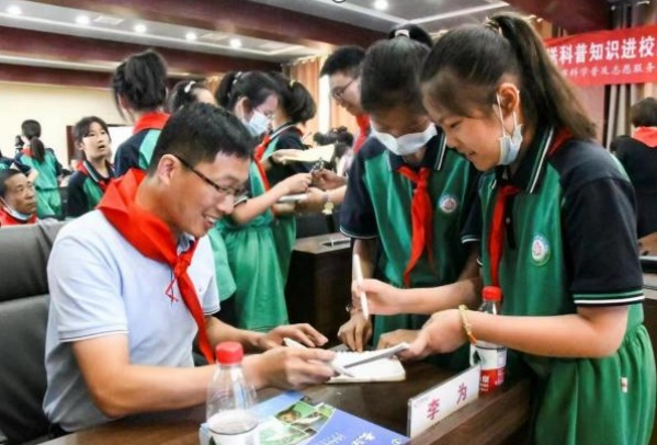 随后的答疑互动环节,同学们争先恐后向自己喜欢的科学家提问题,科学家一一答疑解惑。同学们被科学家渊博的学识、卓越的成果所折服,一颗颗热爱科学的种子已经悄悄地在心里生根、发芽。活动结束后,孩子们捧着小本本排起了长长的签名队,与他们心中的科学家明星“亲密接触”,久久不愿离去。现场最爱提问的五年级李临熙同学表示,这次科普报告活动不仅让他学到了很多有趣、有用的知识,也对科学家这个群体有了全新的认识和了解,希望将来能够成为像他们那样优秀的人。据悉,本次青年科学家走进洪湖市实验小学公益科普论坛活动,洪湖市教育局通过洪湖政府公众号“今日洪湖”“精彩洪湖”推送现场实况云直播,当天,洪湖市全体中小学生在班级里通过班班通同步收看了活动。