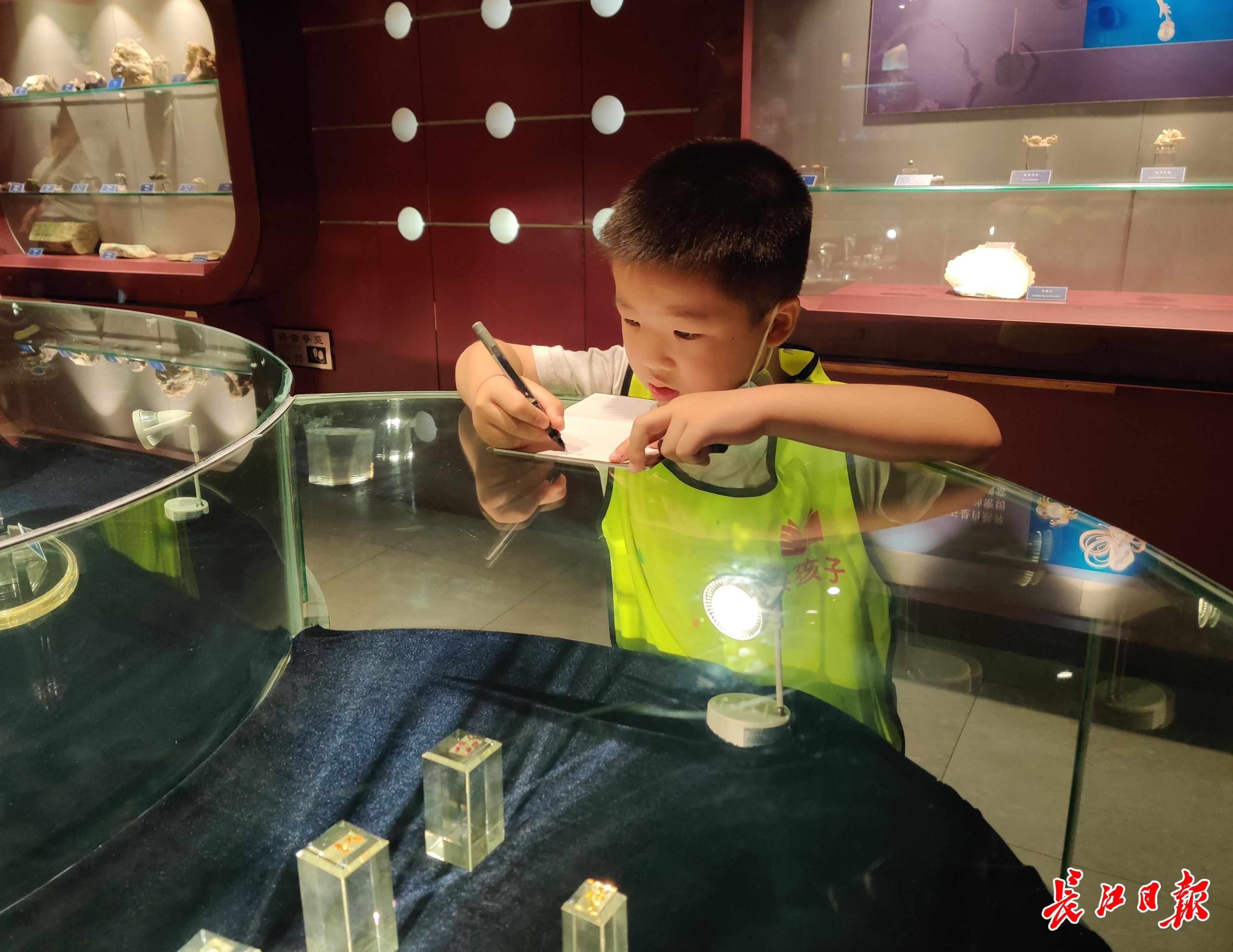 长江日报大武汉客户端6月13日讯 化石是怎么形成的?4亿年前武汉市什么地貌?“生命大爆发”在什么时候?……近日,在洪山区图书馆和洪山区科学技术协会联合举办的“走读洪山”特别活动——“洪孩子”探索之旅中,“洪孩子”们带着一个个问题与好奇走进中国地质大学逸夫博物馆,在研学游览与创意课堂中将答案写满了自己的笔记本。