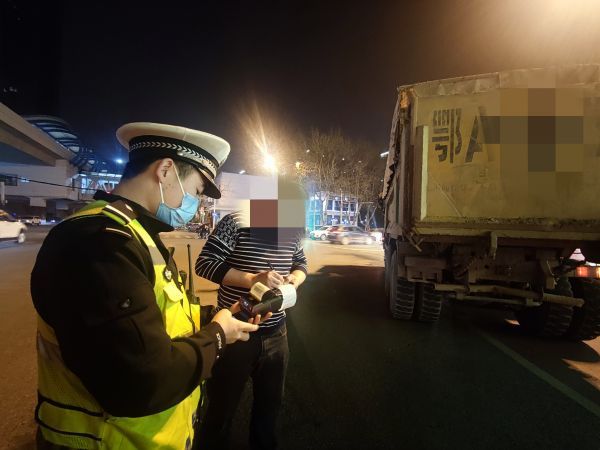 武汉公安交管部门严查渣土车交通违法。 通讯员王威 摄