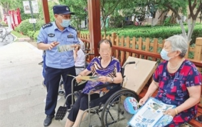 民警许成林在辖区为老年居民进行防骗宣传。记者戴旻阳 摄