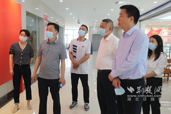 阳新县委书记万鼎(右二)调研阳新图书馆。通讯员 供图