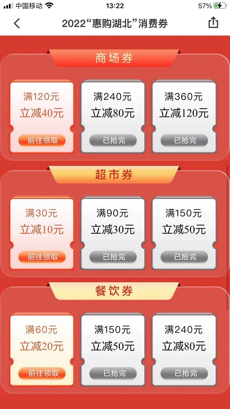 2022“惠购湖北”消费券包括商场券、超市券和餐饮券三种类型,支付宝、云闪付是此次消费券全品类发券平台,用户可抢领商场、超市、餐饮三类中的任意一种。