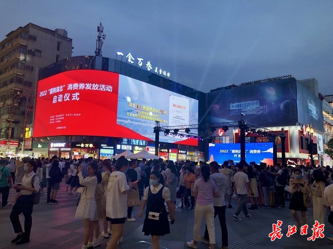 13日晚8时,2022“惠购湖北”消费券发放启动仪式现场。记者张珺 摄