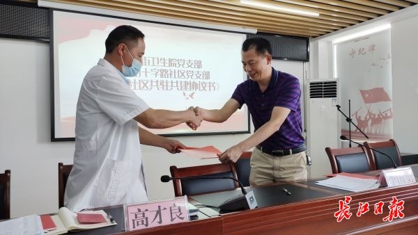 径河街卫生院与十字路社区签订“共驻共建”协议书。长江日报记者刘越 摄
