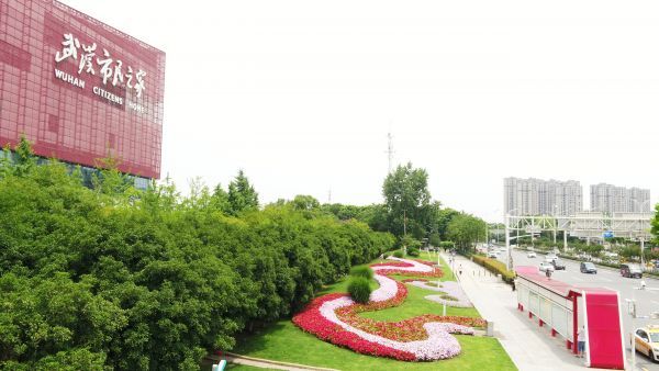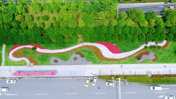 市民之家鲜花“飘带”航拍。